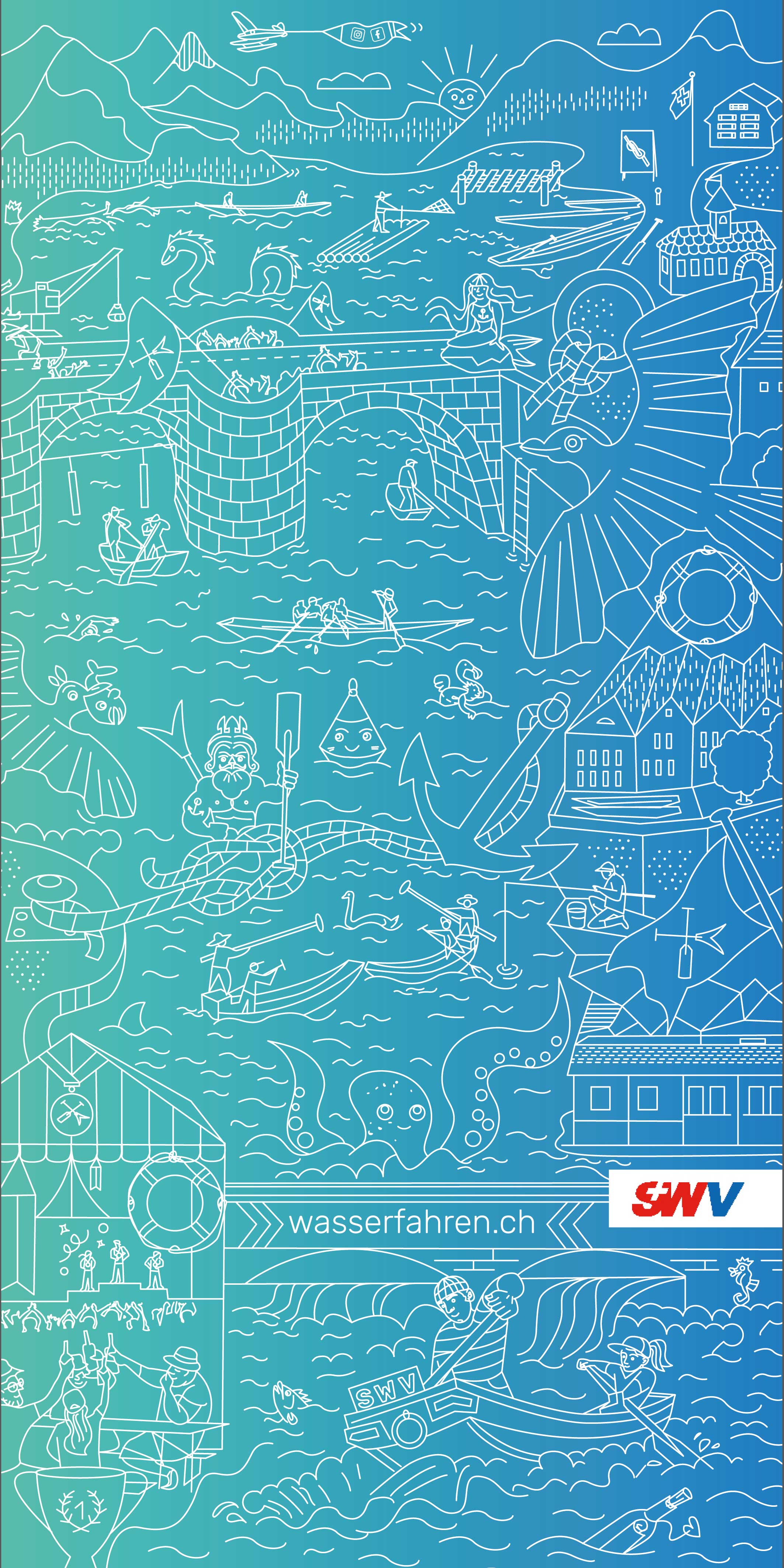 Badetuch-Wimmelbild für den Schweizer Wasserfahrverband für typo.d